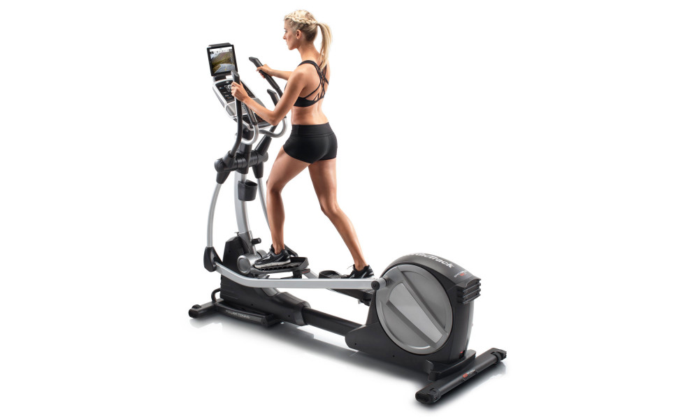 Домашний эллиптический тренажер с классическим заднеприводным расположением маховика весом 8 кг и длиной шага 46 см. 22 уровня бесшумного магнитного сопротивления с электронной регулировкой, 24 встроенные программы. Встроенный вентилятор AutoBreeze™ с ручной и автоматической регулировкой, чтобы провести тренировку в комфортных условиях. Изменение угла наклона до 10 градусов с помощью кнопки на консоли тренажера позволит лучше прокачать ваши квадрицепсы, игры и ягодицы. Сенсорные датчики пульса Dual EKG™ Grips расположены на рукоятках. Точность показаний частоты сердечных сокращений обеспечивается нагрудным датчиком Bluetooth Smart® (опция, приобретается отдельно). После тренировки вы можете хранить тренажер и экономить жизненное пространство благодаря удобному дизайну space saver и транспортировочным роликам. Он настолько компактен, что его можно хранить в шкафу или в любом уголке вашего дома. Совместимость с iFit® Coach Ready позволит путешествовать во время тренировки. Побывать в Париже, пробежаться в Швейцарских Альпах или по побережью в Чили возможно с помощью маршрутов Google Maps™. Вы можете настроить собственные тренировки с неограниченным количеством программ, разработанных сертфицированными тренерами. Библиотека тренировок постоянно дополняется. Тренажер поставляется в коробке в пред-собранном виде и его подготовка к тренировке занимает несколько минут. Дисплей размером 5" с звуковой системой и возможностью подключения iPod®. Большие педали с рифленным амортизирующим покрытием. Держатель для бутылки и планшета.