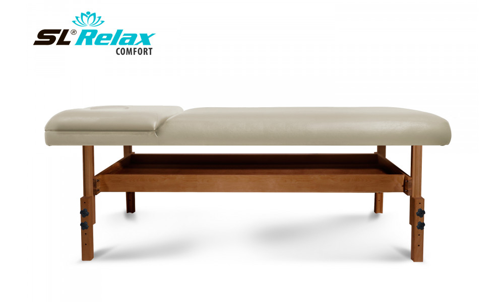 Стационарный массажный стол Comfor SLR-16 бренда SL Relax подойдет для профессионального массажа. Цвет обивки бежевый. Продуманная конструкция модели обеспечит максимальный комфорт клиенту во время массажа спины, шеи и ног. Учитывая специфику массажных процедур, в подголовнике кушетки предусмотрено отверстие для лица. Для дополнительного удобства клиентов мастер сможет отрегулировать наклон подголовника с помощью механического фиксатора. Стол имеет устойчивые ножки, которые дополнительно соединены функциональной стеллажной полкой. На ней мастер сможет расположить различные рабочие принадлежности, например, валик для массажа, полотенца, приборы и прочее. Для изготовления каркаса использовано качественное и прочное дерево. Обивка выполнена из влагостойкого прочного кожзама. Материал хорошо переносит средства очистки и дезинфекции, что значительно облегчает уход за поверхностью и надолго сохраняет красивый внешний вид. Профессиональный массажный стол Comfort SLR-16 сможет полностью удовлетворить потребности специалиста и клиентов. Оттенок цвета обивки на изображении может незначительно отличаться от оттенка цвета обивки на изделии. Обратите внимание, оттенок цвета обивки на изображении может незначительно отличаться от оттенка цвета обивки на изделии.