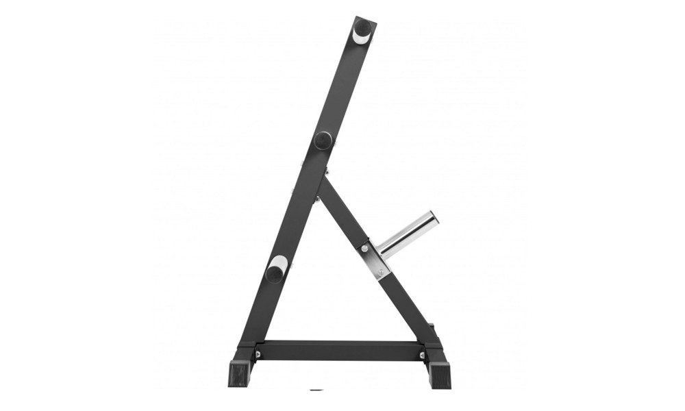 Стойка DFC для хранения дисков. Покрашена в черный цвет. Стойка выполнена в профессиональном студийном качестве. Позволяет создать благоприятную психологическую атмосферу во время тренировки - все диски идеально отсортированы. Семь посадочных мест (втулок) для хранения дисков с посадочным диаметром 51 мм. Длина каждой втулки 20 см. Втулки расположены на высоте 32, 45, 70 и 100 см от пола. Общая нагрузка на стойку не должна превышать 350 кг. Каждая втулка выдерживает не более 60 кг. Резиновые ножки для защиты пола от царапин и устойчивости всей конструкции.