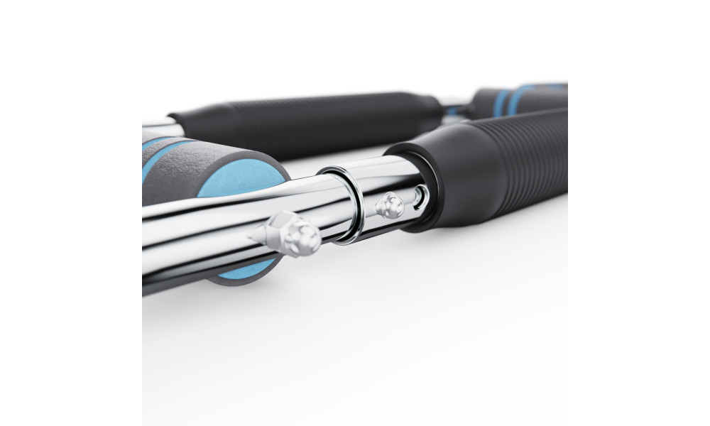 Корпус изготовлен из утолщённой стальной трубы, обеспечивающей стабильность и надёжность при ежедневном использовании. Двойная пружина отвечает за плавную силу отскока, а нескользящие ручки с мягким покрытием гарантируют комфорт и безопасный захват.