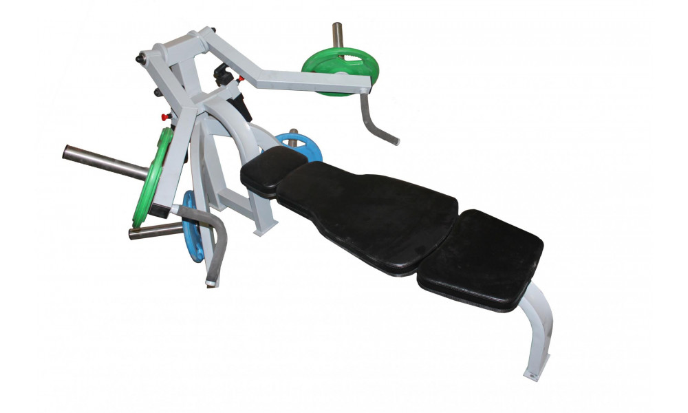 Характеристики Габариты: 1400x1800x800 Вес: 60 кг. Нагрузка: 150 кг. Описание Данное оборудование позволяет проработать мышцы груди и выполнить жим лежа на горизонтальной скамье, также задействуются передние дельтовидные мышцы и трицепсы. Силовой тренажер отличается компактными размерами, но заниматься на нем безопасно, удобно и комфортно. Благодаря грамотному распределению и регулировке нагрузки можно менять вес грузоблока, тем самым создавать для себя максимально комфортные условия тренировок. Для создания несущей рамы используются качественные профильные трубы, покрытием порошковым составом.